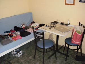 And finally, here is my little haven, my accomodation for the week.  Simple, clean, functional.  It’s in a campground on the lake (they call them Holiday Parks here), about 3k from town.  It’s peaceful and quiet and I’m so glad to be here.  I’ve spread out all over the room, which will have to change when Jesse and Sam and Laura come back, but for now it works.