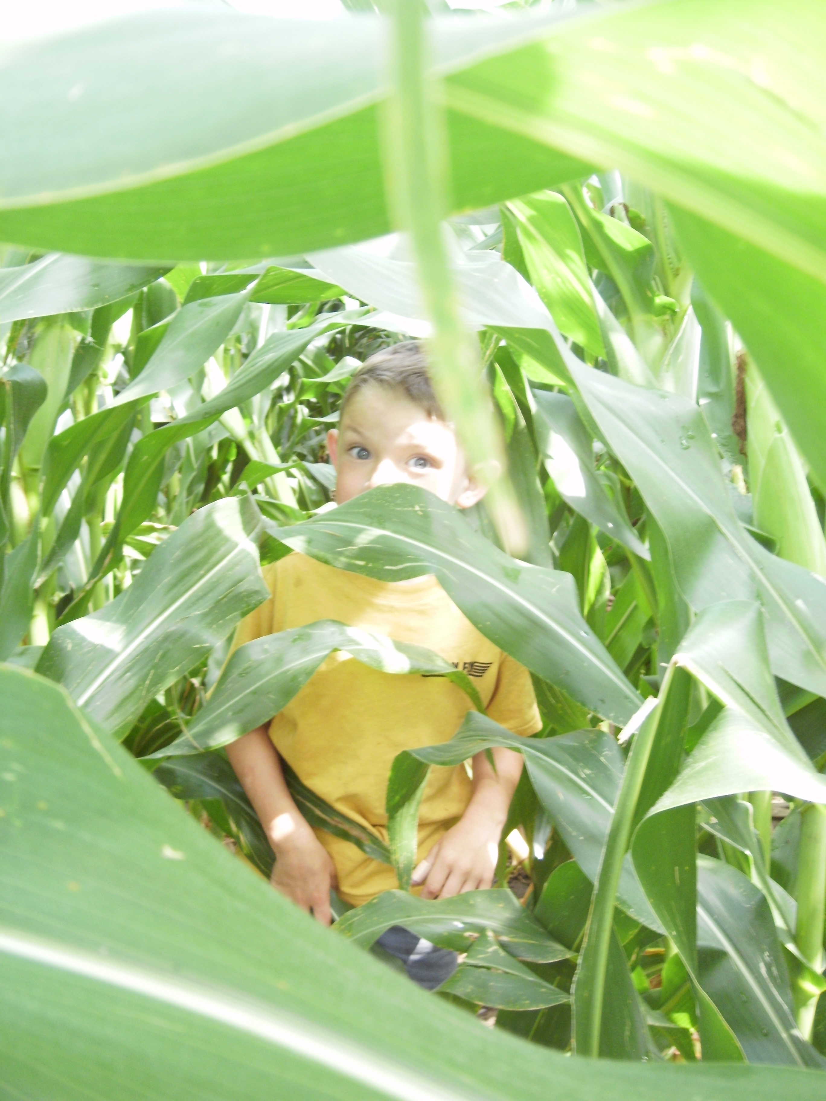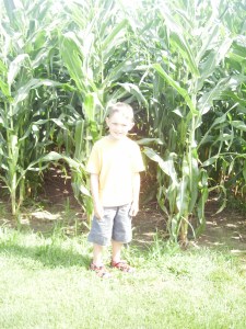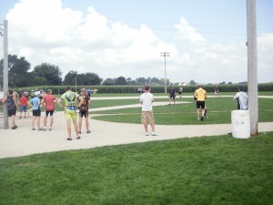 About a mile off-route on the last day, we were directed to the Field of Dreams house and ball field. We had been through there before, in about 1993, and have a picture of Ben on the pitcher’s mound. The field was too crowded for the same picture with Aden, but we took one at the field.