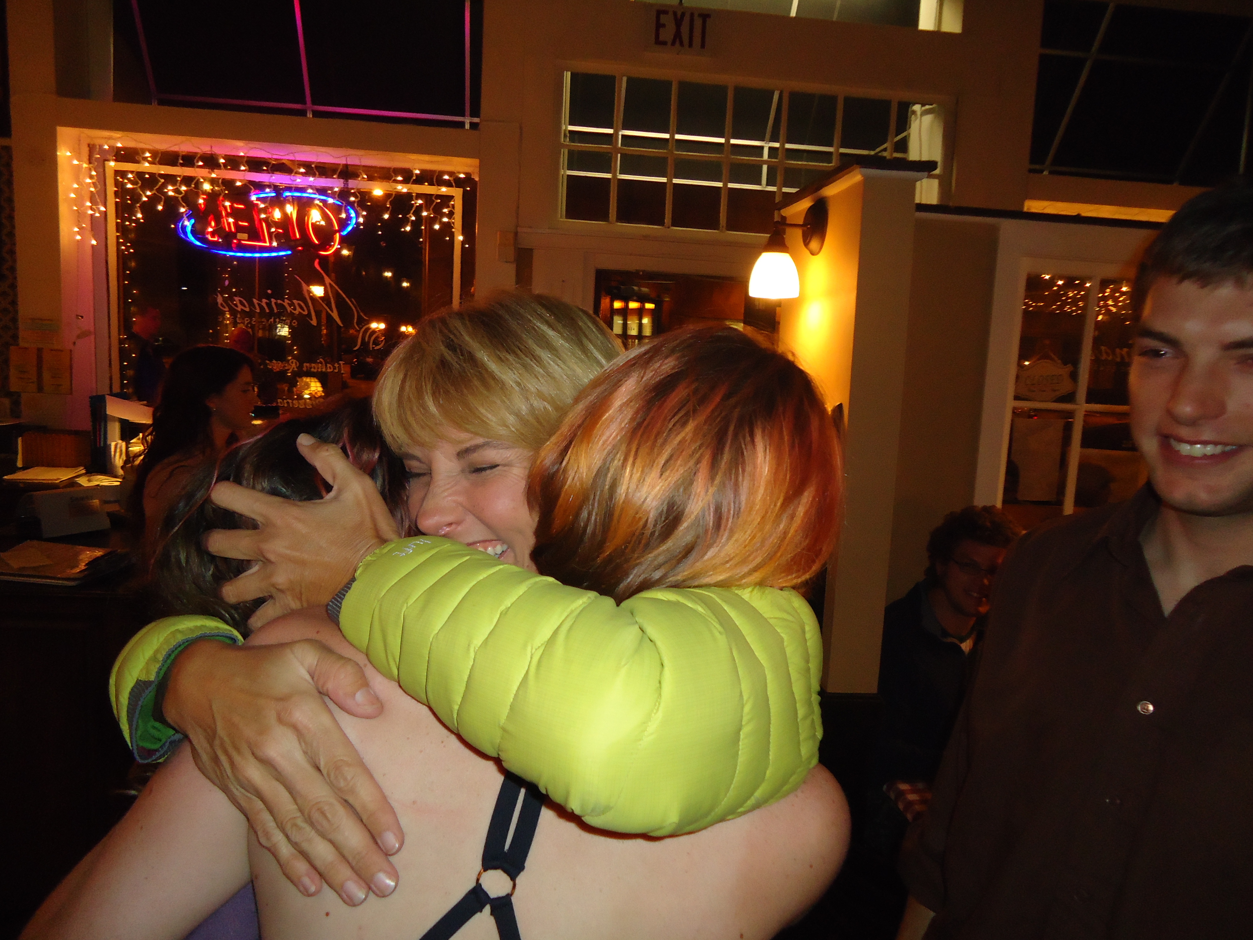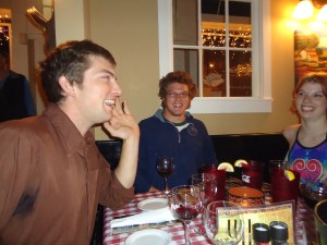 It’s been all over Facebook, but I think I have a couple of readers who aren’t on FB, so the story begins Friday night, when my youngsters colluded to surprise me with their very presence! I had one of the four confirmed to be here – #2, Sam, is home from his year in New Zealand. Amy and Glenda said they were committed to a women’s backpacking trip in Knoxville, and Ben in Colorado was tied up with school and work. Whatever they did to make it happen, there they all were, sitting at a table in Marina’s on Friday night!