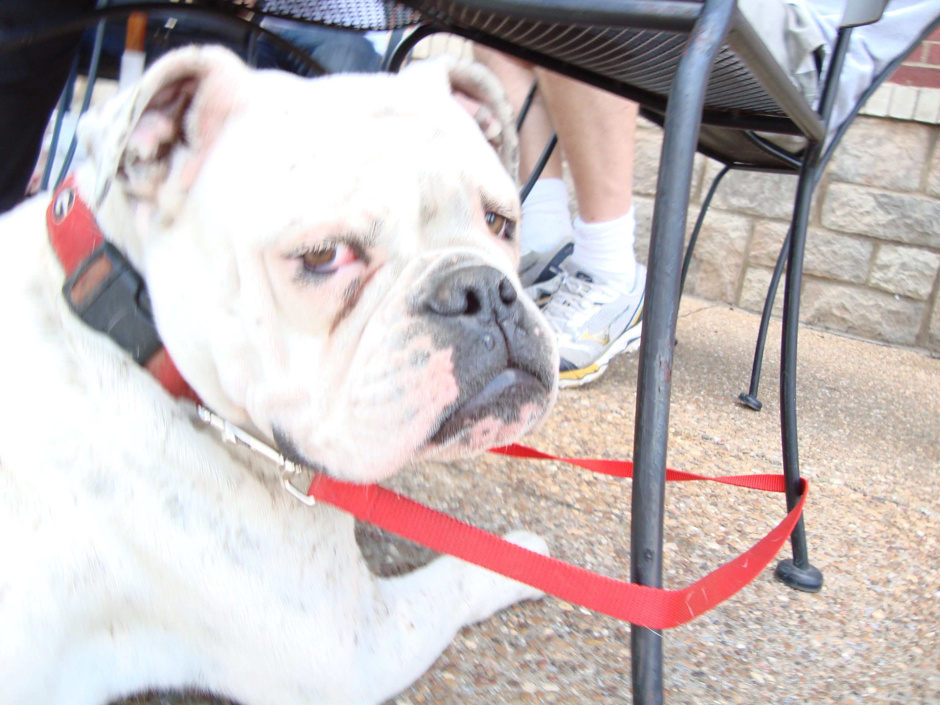 One of the distinguishing features about a bulldog is their compact, muscular build. Uga was petite for a bulldog, but she had the classic bulldog stance with her broad shoulders, narrow hips, and endearing underbite. While you could hold her in one hand when we got her, it didn’t take her long to fill out to her delicate 50 pound self. Being a 50 pound dog is not unusual, until you take into account her height, putting all of that muscle mass on 4 short, stocky legs. Watching her try to get up on to the couch was endlessly entertaining. She did great with the first two, her front legs, and didn’t have too much trouble hooking the toenail of one her back legs onto the piping of the cushion. It was that last heave up that was the funny part. We would actually alert the household that Uga was going to get on the couch, just for the entertainment value, and Jesse never failed to give ongoing commentary to encourage her along.