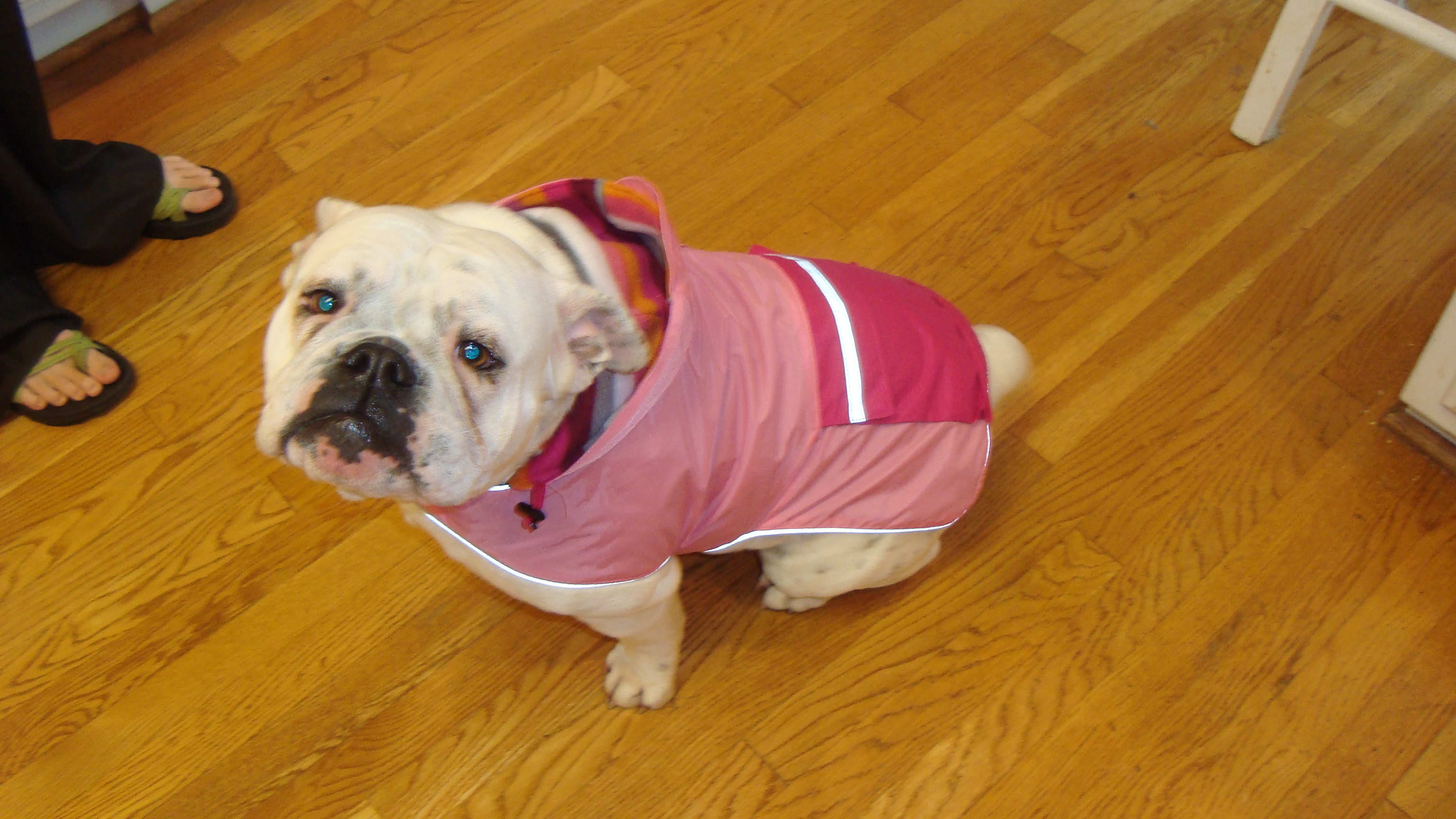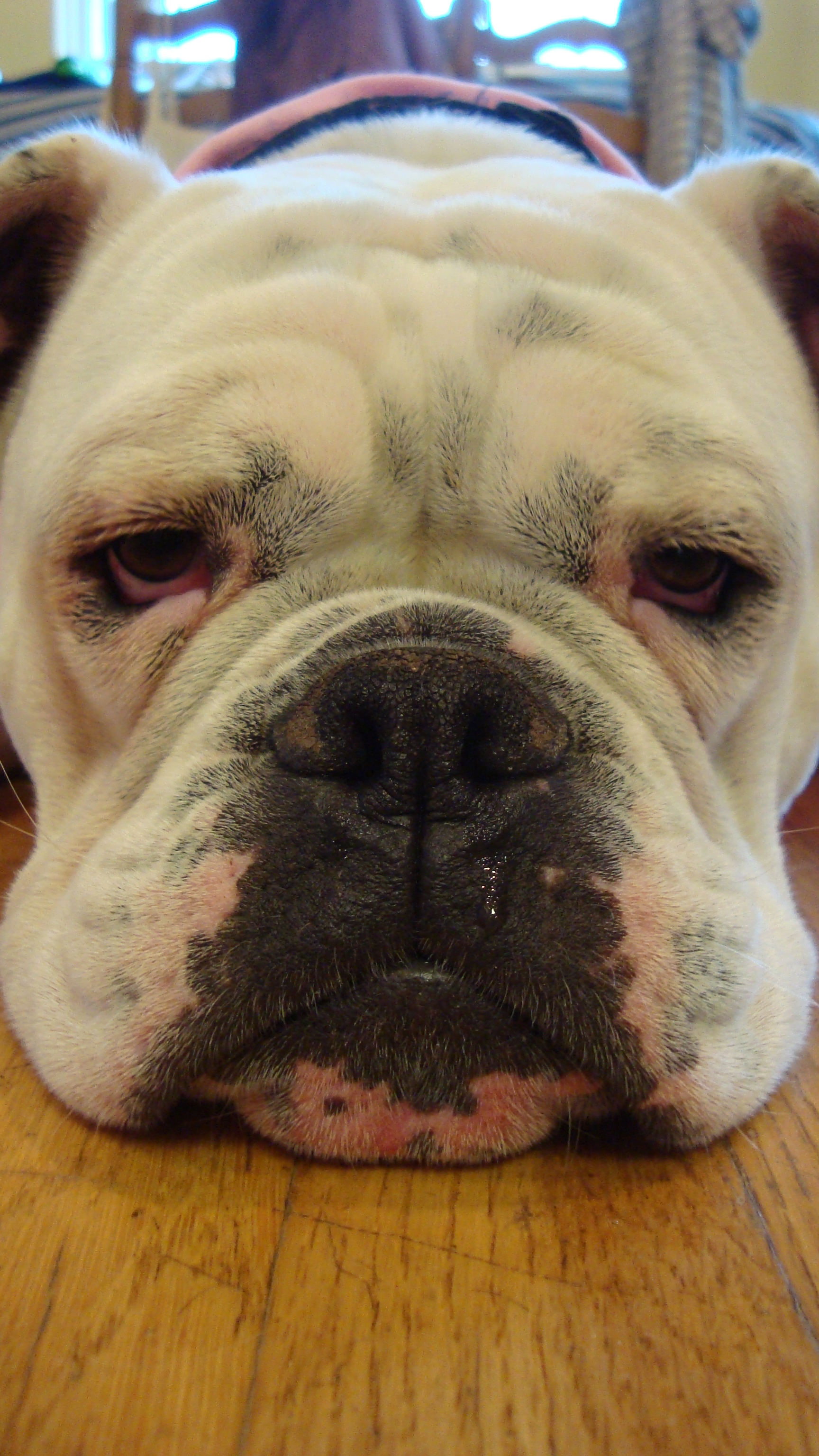 So when Jesse finally capitulated to my whining of 25 years for a bulldog, we were in for a surprise. This little while block of tiny puppy muscle snorted, farted, and drooled her way into our hearts at first sight.