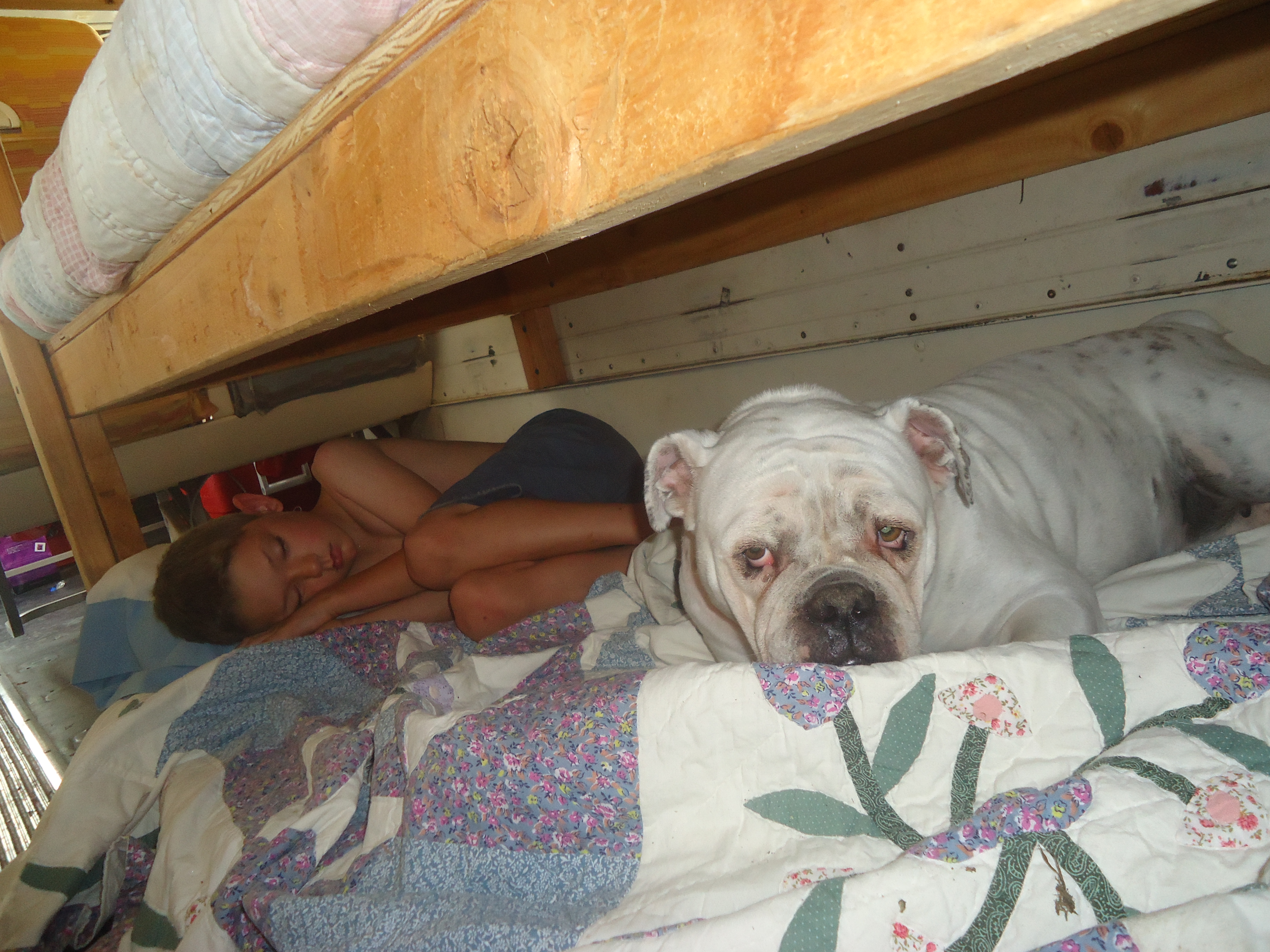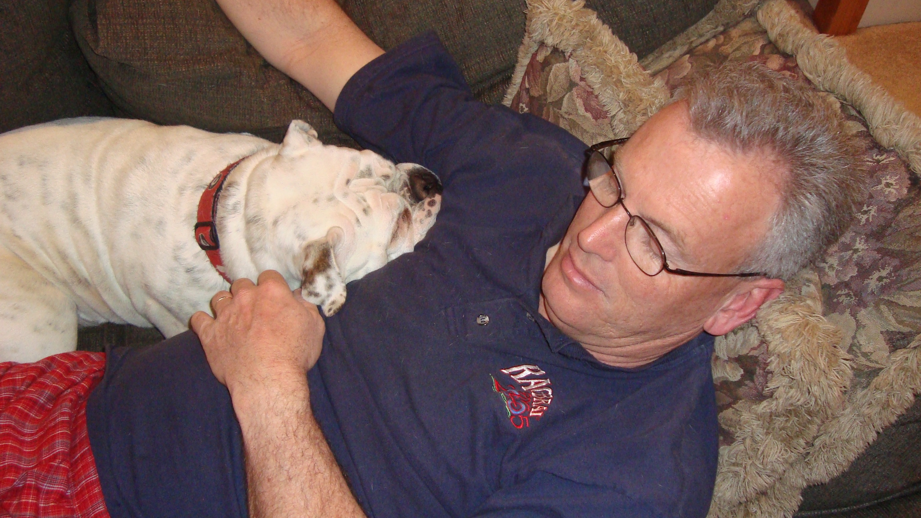 Many bulldogs struggle with their weight; in her youth Uga had not had that problem, but there is no doubt that she was a C-H-O-W-H-O-U-N-D. She could be totally relaxed on her throne, but if you opened a drawer or cabinet in the kitchen, she could be as fleet as a gazelle, and be at your feet looking up expectantly in under 5 seconds. Again, our family made a game of this, seeing how quietly we could make a kitchen sound that would still wake her. Pretty quietly. The Sit command, which we taught her to do before we would give her a treat, was her most reliable trick. And if something accidentally fell to the floor…forget about it. Even and especially the ice from the icemaker. Yum.