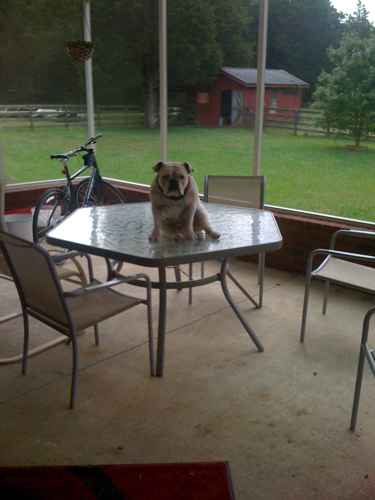 Bulldogs are pretty content to lie about the place for hours in a day, and Uga fit the profile well. However, when I would suit up to go for a run on the property – hot/cold/rainy/dark/light – she was ready to go. She would run on those short legs, enjoying the smells and textures of the farm, rolling in the horse and cow manure, wading in the ponds, chasing rabbits and turkeys, and end up back at the house, panting, tired, and, I’ll speak for her, happy.