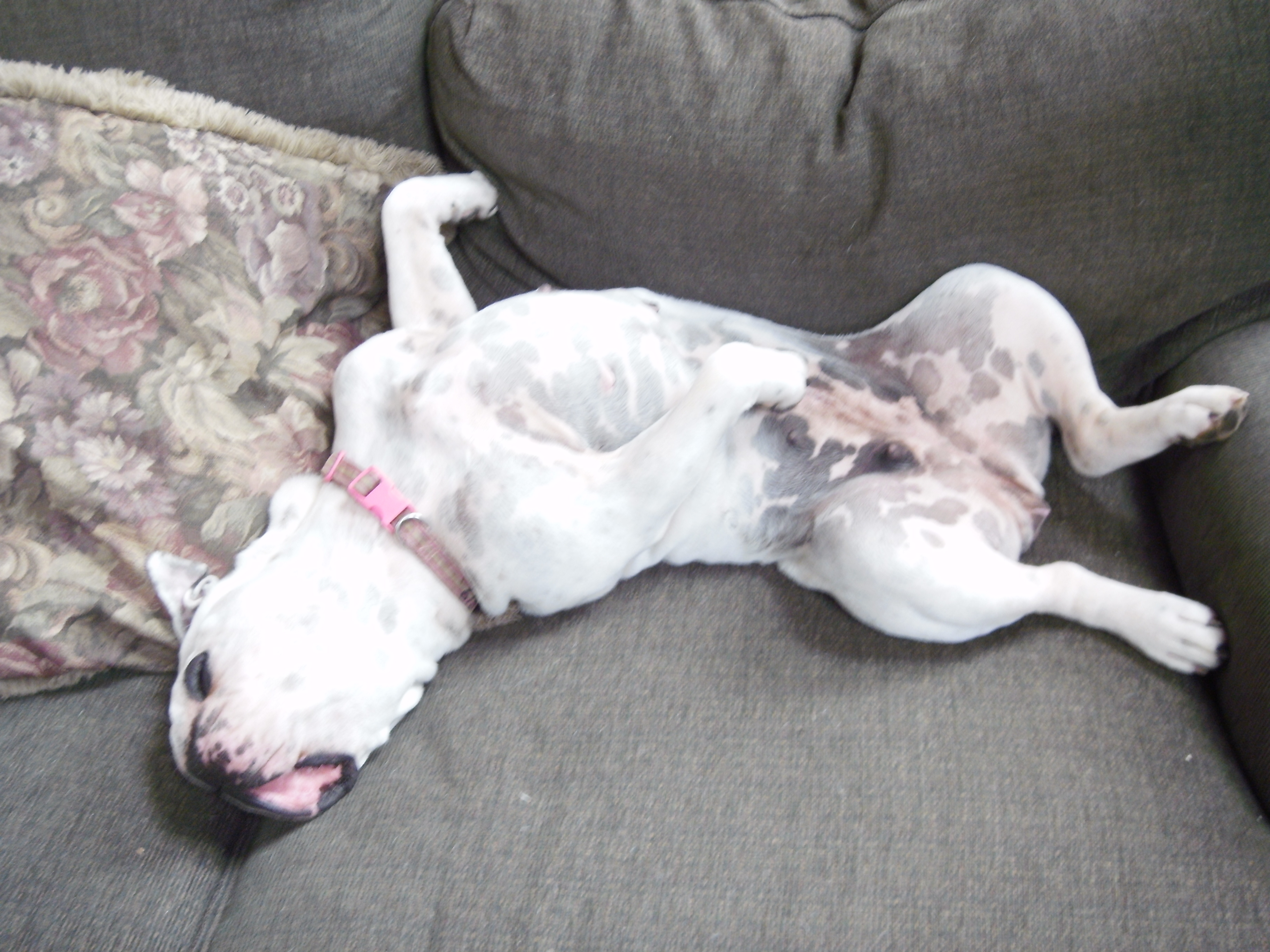 We have scads of pictures of Uga in her spot on the couch in her favorite position. Like every pet we’ve ever had, we had no rules for where she could sleep, and most of her day was spent high on the back of the couch, ultimately completely breaking down that particular cushion. I think she liked it there because everyone could touch her coming through the house. You just could not pass that wrinkly face and upturned belly without a little rub.