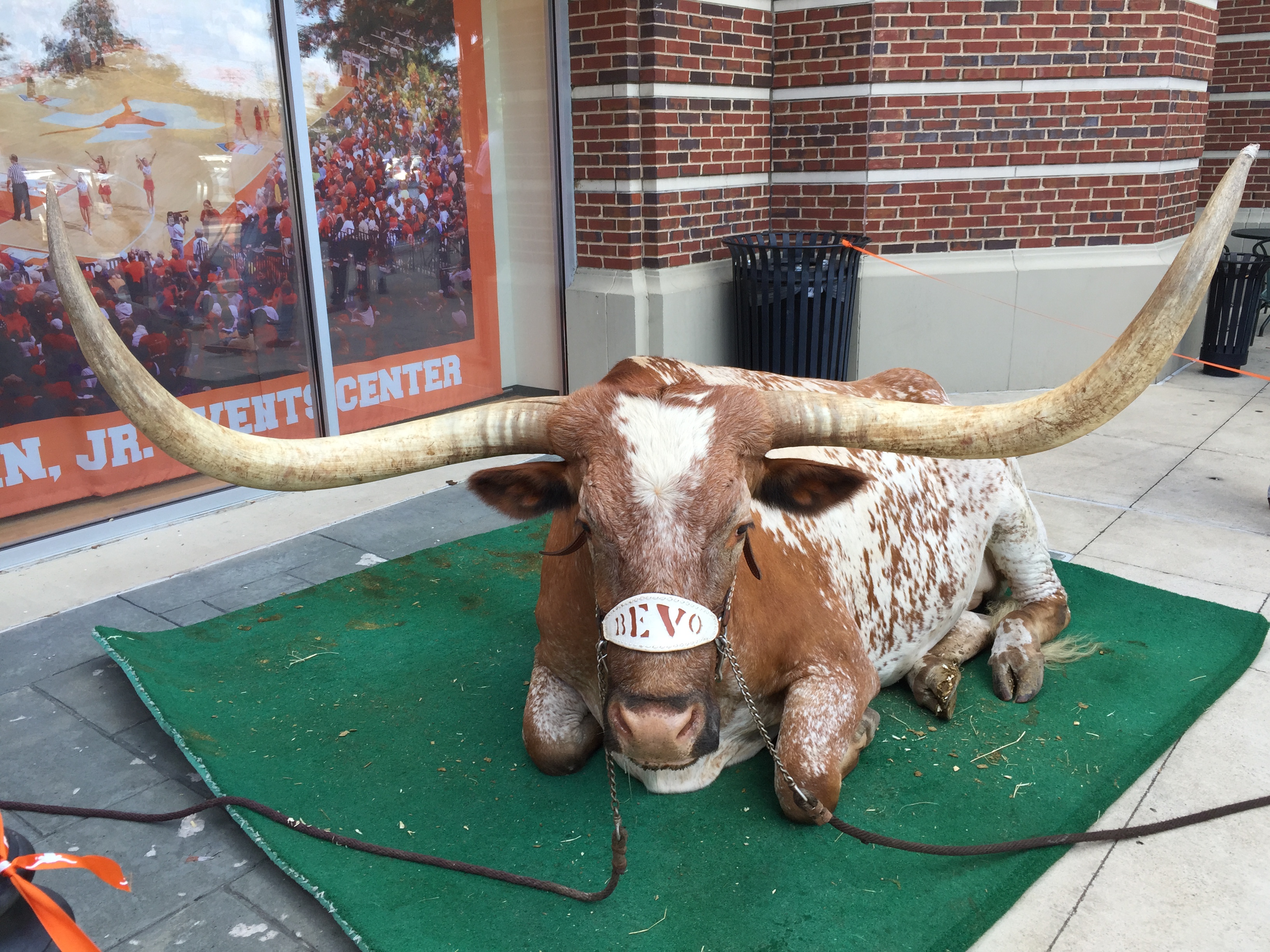 So in the meantime, here’s a picture of Bevo the Longhorn from the University of Texas, because look at him!