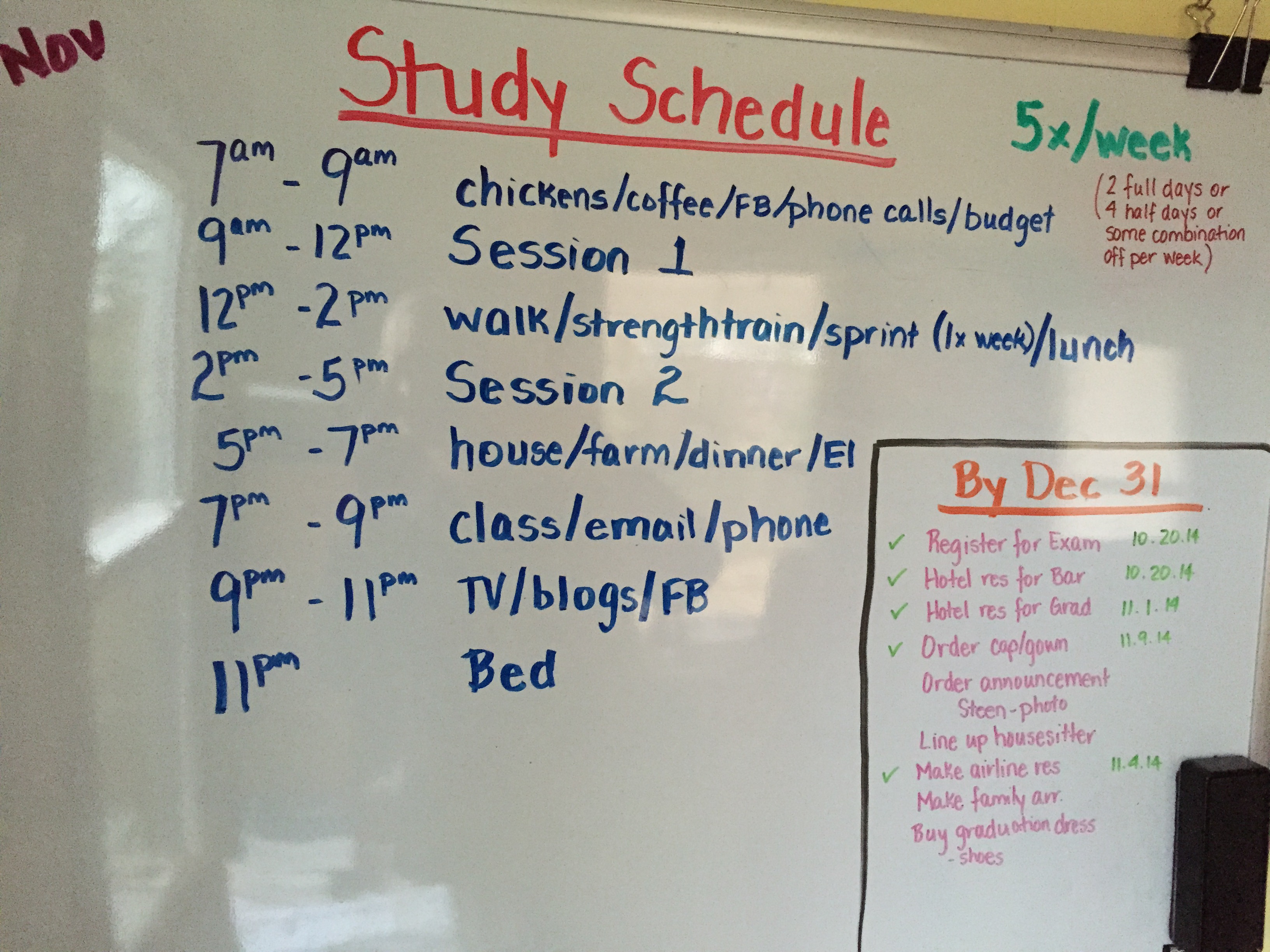 I began my Bar Review in October, in preparation for the February, 2015 Bar Exam. The months of October and November were spent in a soft review of all of the testable subjects, on about a 6-hour-per-day schedule. In December I transitioned to longer days and more intense study.